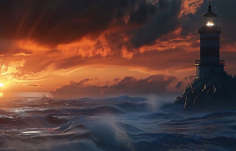 Leuchtturm am stürmischen Meer