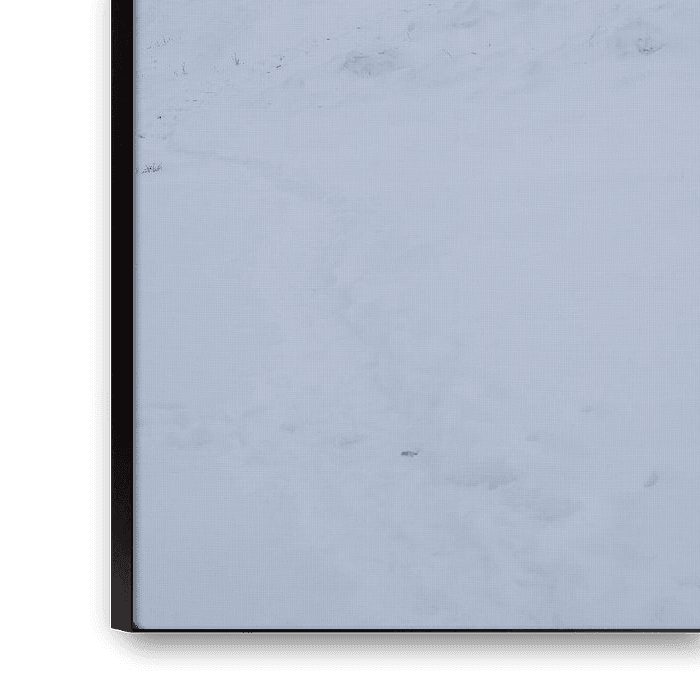 Die Atmosphäre ist ruhig, kühl und minimalistisch. Und doch strahlt das Werk durch die eine Farbe, die sich tapfer gegen den Winterhimmel abhebt, Wärme aus. In einem Innenraum bringt dieses Werk Ruhe, Raum und einen Hauch von Abenteuer; perfekt für alle, die Einfachheit, Naturgewalt und das Gefühl, "dem Alltag zu entfliehen", lieben.