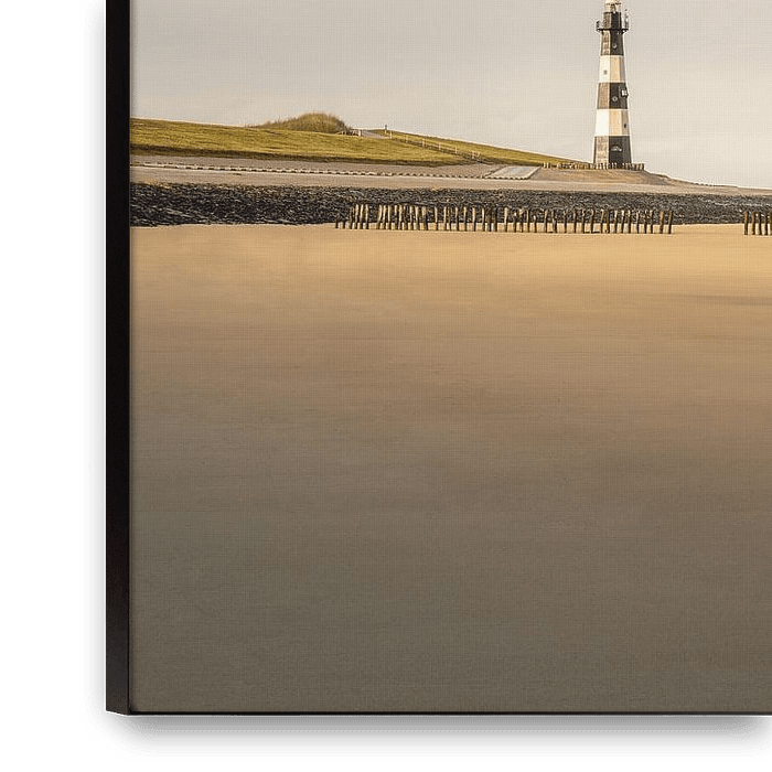 Bestelle das Foto Leuchtturm von Breskens bei Sonnenaufgang von John van de Gazelle fotografie als Reproduktion auf Leinwand, Alu-Dibond, als Poster, Fototapete oder Acrylglasbild.