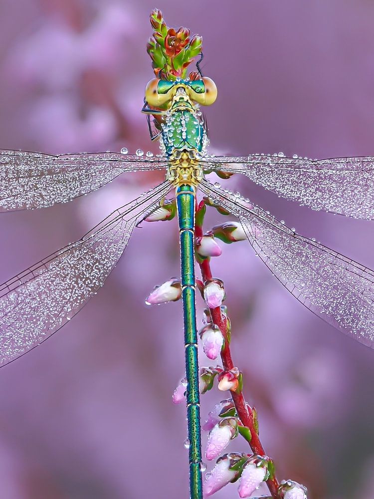 Was für ein Anblick! So wunderschön ausgebreitet hing diese Waldlibelle in der Heide. Bedeckt von Tautropfen, darauf wartend, dass die Sonne alles trocknen würde. Auch die Farben bilden einen schönen Kontrast. Ich habe meine Kamera auf ein Stativ gestellt und eine Fokusreihe aufgenommen. Mit dem Ziel, alles scharf abzubilden. Das gelang…