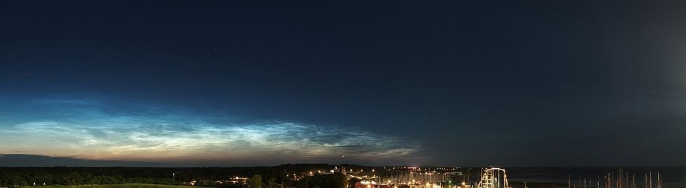 Und in dieser Nacht wurde sie von dem wunderschönen Naturphänomen der leuchtenden Nachtwolken begleitet, bei dem das letzte Sonnenlicht unterhalb des Horizonts ein Meer von Eiskristallen in den höchsten atmosphärischen Schichten beleuchtet.