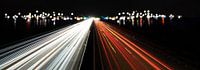 autobahn nachts mit lichtspuren, abstrakte stadtlandschaft, verkehr, autos, linien auf schwarzem hintergrund, stadtlandschaften panorama, nacht in den städten, blick von der autobahn brücke, nachtaufnahme, licht in der dunkelheit