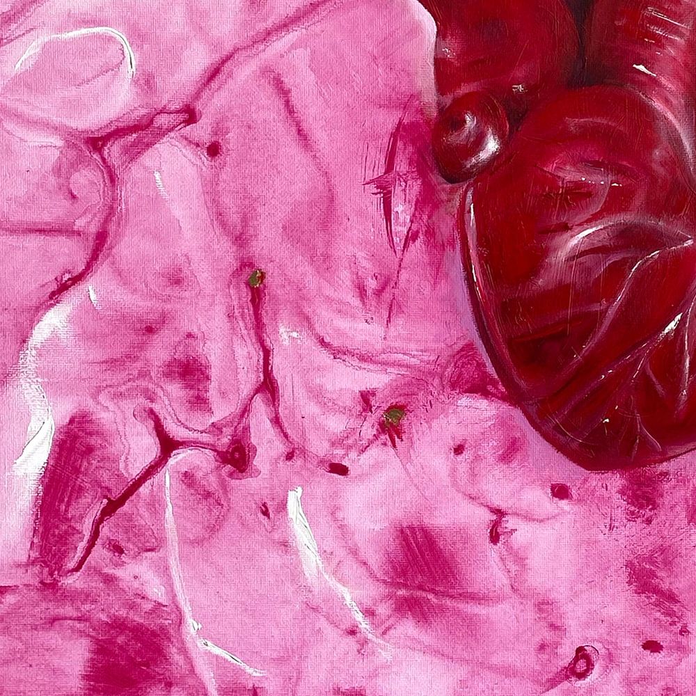 Ein besonders emotionales Werk von Ladenthin ist das Bild „Liebe-2024“. Das Original hat eine Größe von 60 x 60 cm und ist in Mixed Media (Öl auf Acryl) ausgeführt. In einer kraftvollen, expressiven Malweise zeigt es ein Herz. Dieses Herz, eingebettet in großzügige Farbflächen, erinnert sowohl an die feine Struktur eines Gehirns als auch an die fragile Oberfläche einer Folienverpackung. Diese vielschichtige Darstellung regt dazu an, über die Zerbrechlichkeit und Komplexität der Liebe nachzudenken. Die offenen, unbehandelten Bereiche des Bildes lassen viel Raum für persönliche Interpretationen und laden den Betrachter ein, seine eigenen Gefühle und Gedanken zu reflektieren.