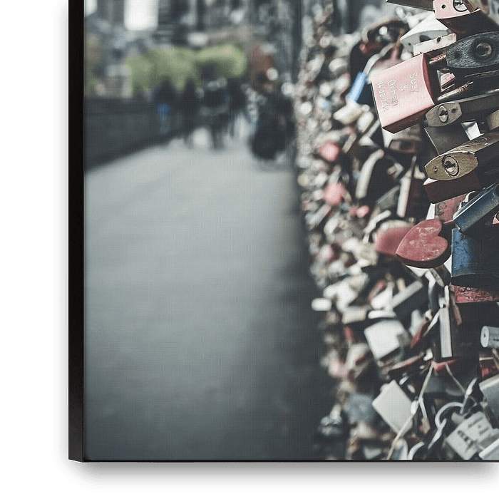 Bestelle das Foto Liebesschlösser an der Hohenzollernbrücke in Köln von Rafaela_muc als Reproduktion auf Leinwand, Alu-Dibond, als Poster, Fototapete oder Acrylglasbild.