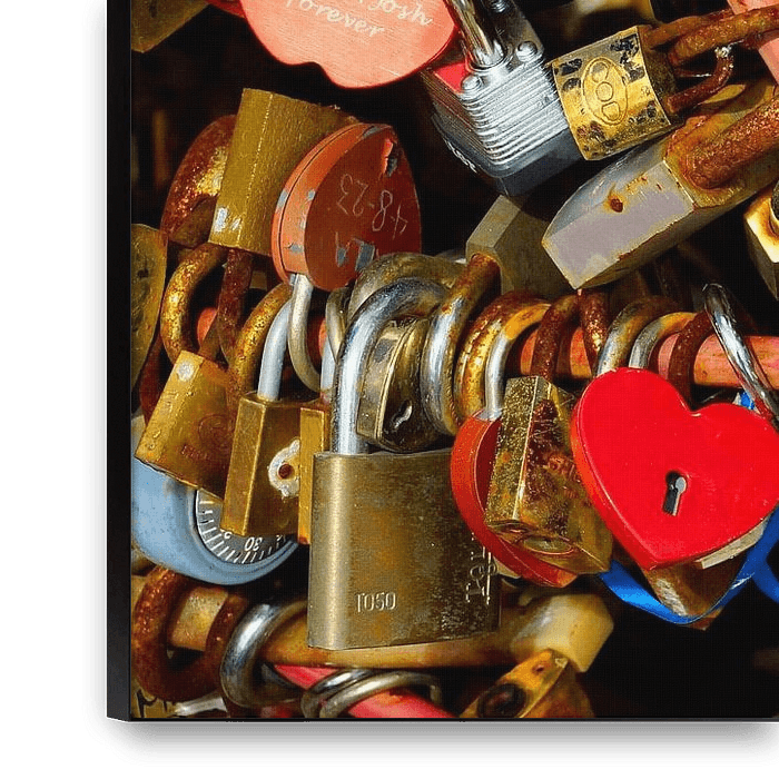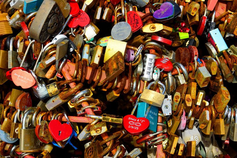 Bestelle das Foto Liebesschlösser von Matthias Stolt als Reproduktion auf Leinwand, Alu-Dibond, als Poster, Fototapete oder Acrylglasbild.