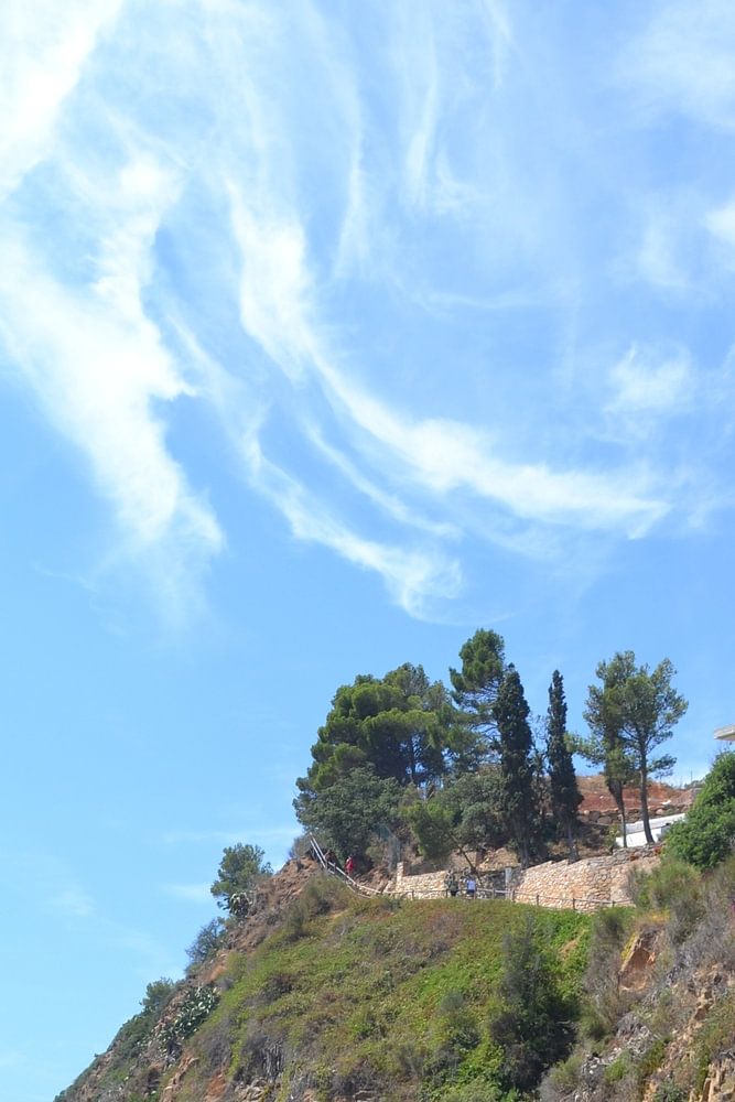 Die Wolke streichelt den Hügel an diesem heißen Tag in Tossa de Mar, Spanien. Hergestellt am Strand Platja des Codolar