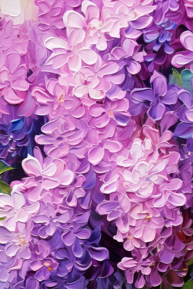 Ein farbenfrohes digitales Gemälde von Purple Lilac. Das Werk verleiht Ihrem Interieur einen verträumten und farbenfrohen Look!