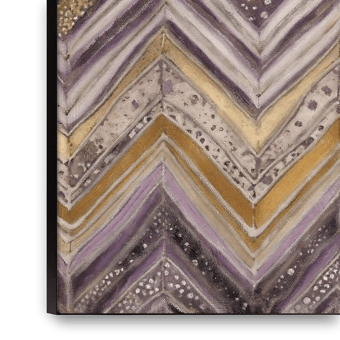 Bestelle dieses Art Deco-Wandbild Lila und Gold Zickzack von Whale & Sons als Reproduktion auf Leinwand, Alu-Dibond, als Poster, Fototapete oder Acrylglasbild.