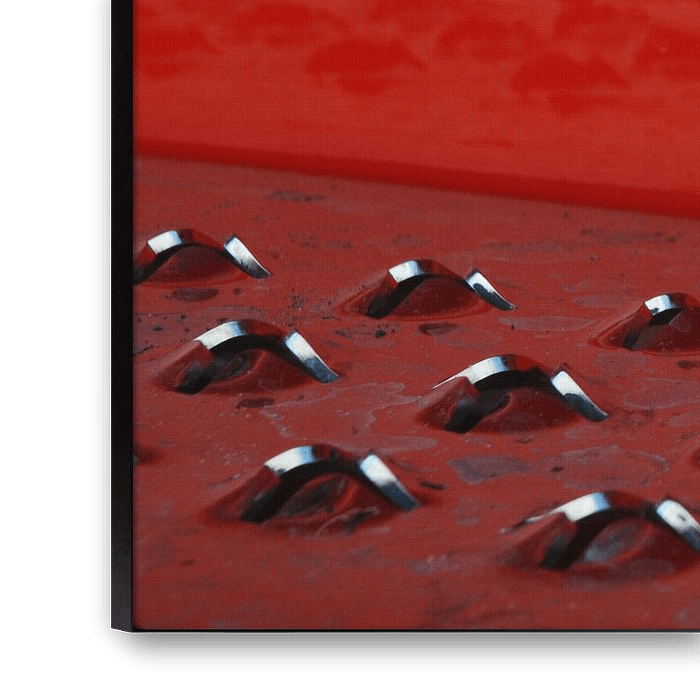 Detail des Trittbretts eines neuen amerikanischen Lastwagens, fotografiert während einer Messe in Joure im Jahr 2011.