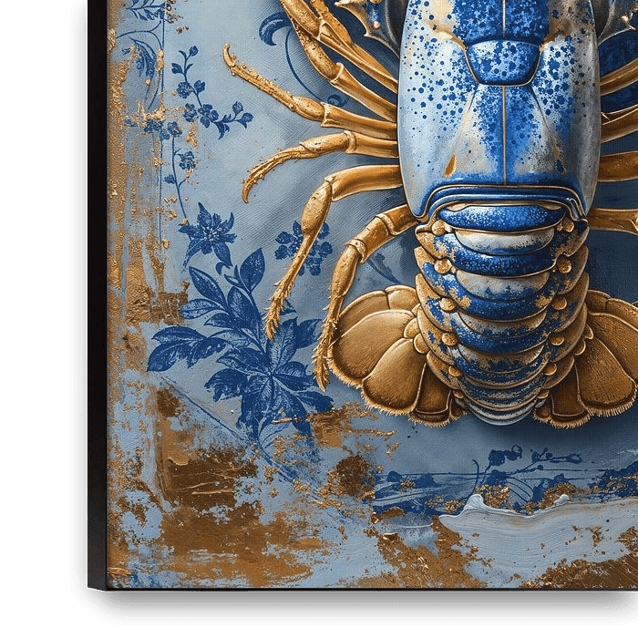 Lobster Luxe - Malerei Classic Delft Blue Lobster mit Gold von Marianne Ottemann - OTTI