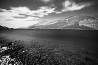 Dit lange meer in schotland in zwart wit gefotografeerd met een lange sluitertijd. Loch Lochy in de Schotse hooglanden.