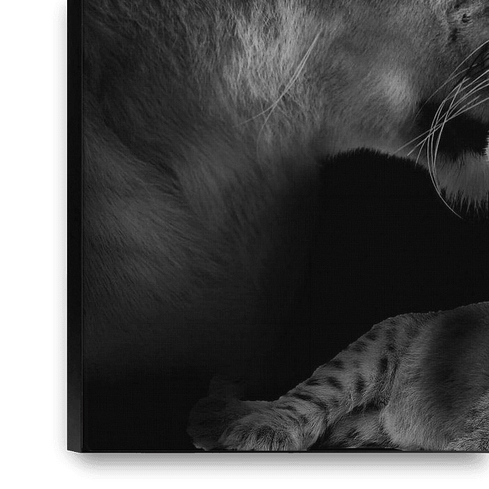 Eine Löwenfamilie mit 2 Jungen, in schönen Schwarz-Weiß-Kontrasten. Diese Werke sind von sehr hoher Qualität und ein echter Blickfang, den Ihr Besuch sicher bemerken wird.
