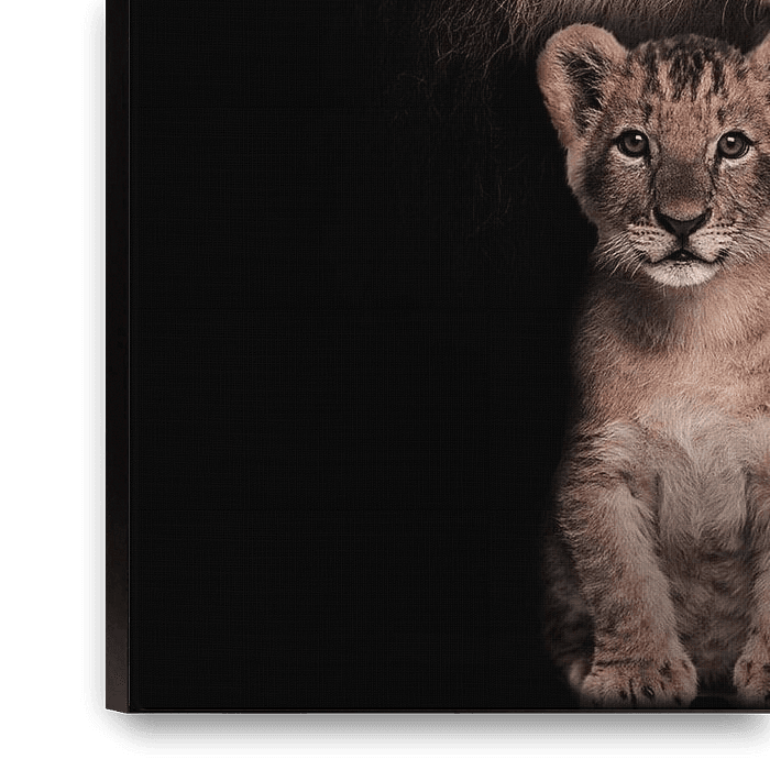 Löwenfamilie mit Jungen, ein schönes Werk aus Licht und Schatten. ein schönes Werk für eine Familie mit zwei Kindern. Diese Arbeit ist von hoher Qualität