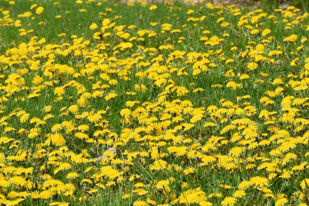 Löwenzahnblüten im Park, Montmagny, Quebec, Kanada