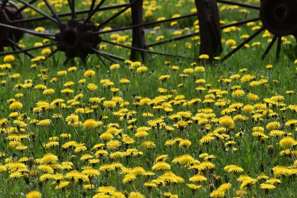 Löwenzahnblüten im Park, Montmagny, Quebec, Kanada