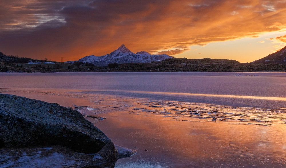 In den Wintermonaten folgt der Sonnenuntergang fast nahtlos dem Sonnenaufgang. Das ermöglicht bezaubernde Stimmungen besonders in dieser Bucht, die teils gefroren, aber auch mit spiegelndem Wasser bedeckt war.