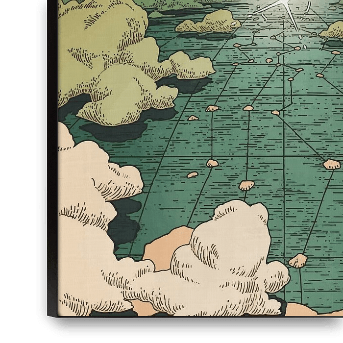 Ihre gewählte Kunst auf Leinwand, gespannt in einem Aluminiumrahmen. Schnell und einfach austauschbar für eine frische Ausstrahlung und ganz nach Ihren Wünschen.