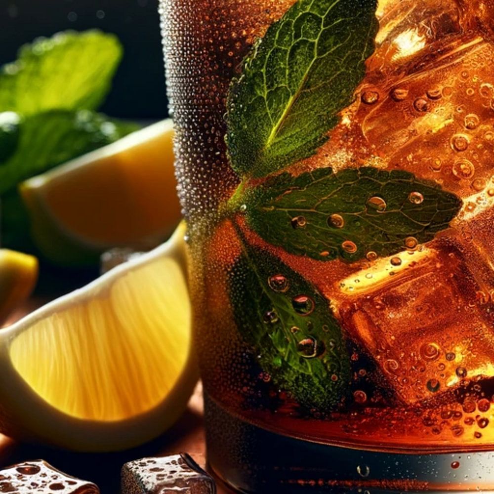 Das Werk "Long Island Iced Tea" ist eine meisterhafte Darstellung des berühmten Cocktails, die durch die Vision der surrealen digitalen Kunst neu erfunden wird. Das mit DALL-E erstellte Bild präsentiert ein prall gefülltes Glas des Getränks, in dem Eiswürfel und frische Minzblätter eingetaucht sind, umgeben von einer lebendigen Atmosphäre aus funkelnden Lichtreflexen und schwebenden Wassertropfen, die das Licht einfangen und reflektieren.