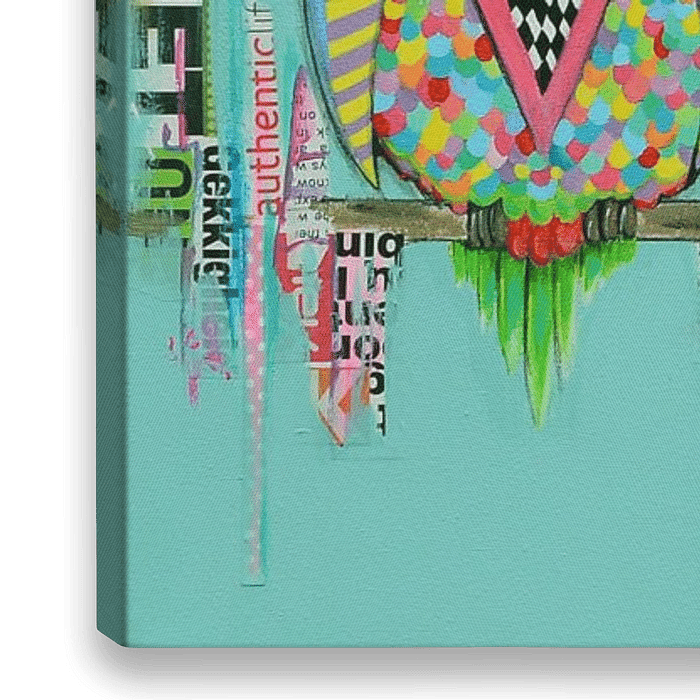 Bestelle dieses abstrakte Wandbild Look at us - Eulen von Janet Edens als Reproduktion auf Leinwand, Alu-Dibond, als Poster, Fototapete oder Acrylglasbild.