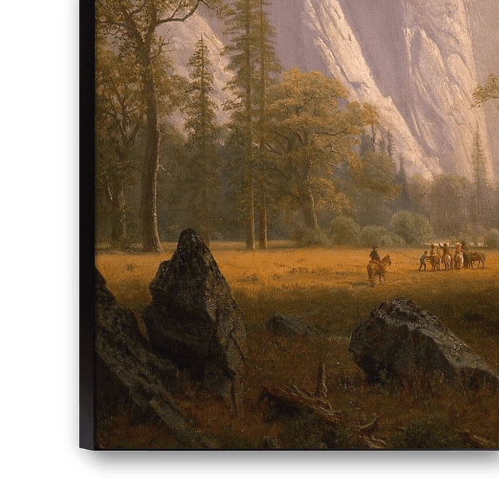 Im Sommer 1863 besuchte Albert Bierstadt einige Zeit den Yosemite-Nationalpark, in dem er eine Reihe atemberaubender Landschaftsbilder gemalt hat, darunter "Looking Up the Yosemite Valley", das die Westseite des Tales darstellt.