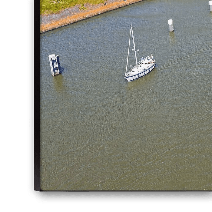 Luftaufnahme der Schleusen von Kornwerderzand am Afsluitdijk in den Niederlanden