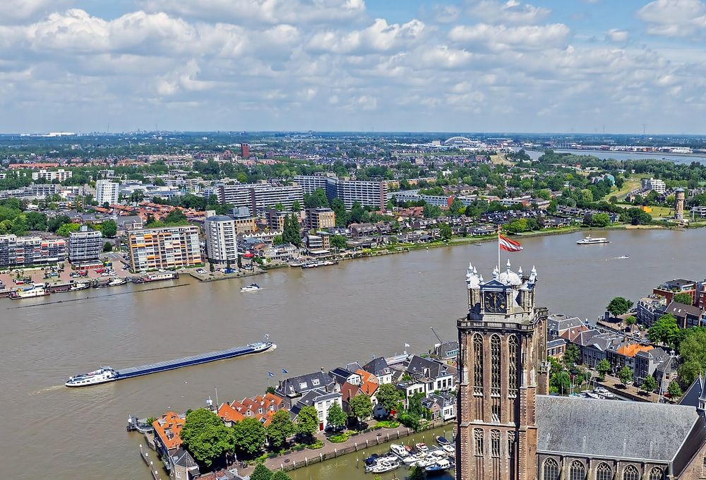 Luftaufnahme der Stadt Dordrecht mit Onze Lieve Vrouwenkerk in den Niederlanden