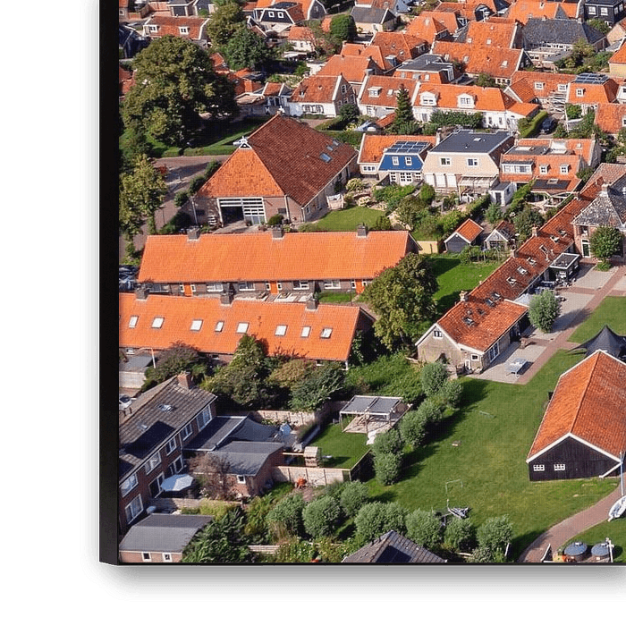 Luftaufnahme des Dorfes Terherne in Friesland, NiederlandeEye on You Stadtbild von Amsterdam zu Weihnachten an der Spiegelgracht in den Niederlanden bei SonnenuntergangEye on You