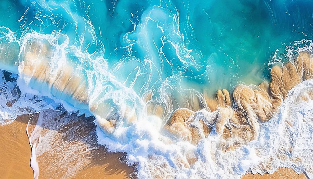 Luftbildhintergrund mit blauen Wellen und Strand
