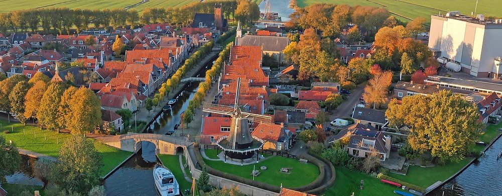 Luftbildpanorama des historischen Sloten in Friesland Niederlande