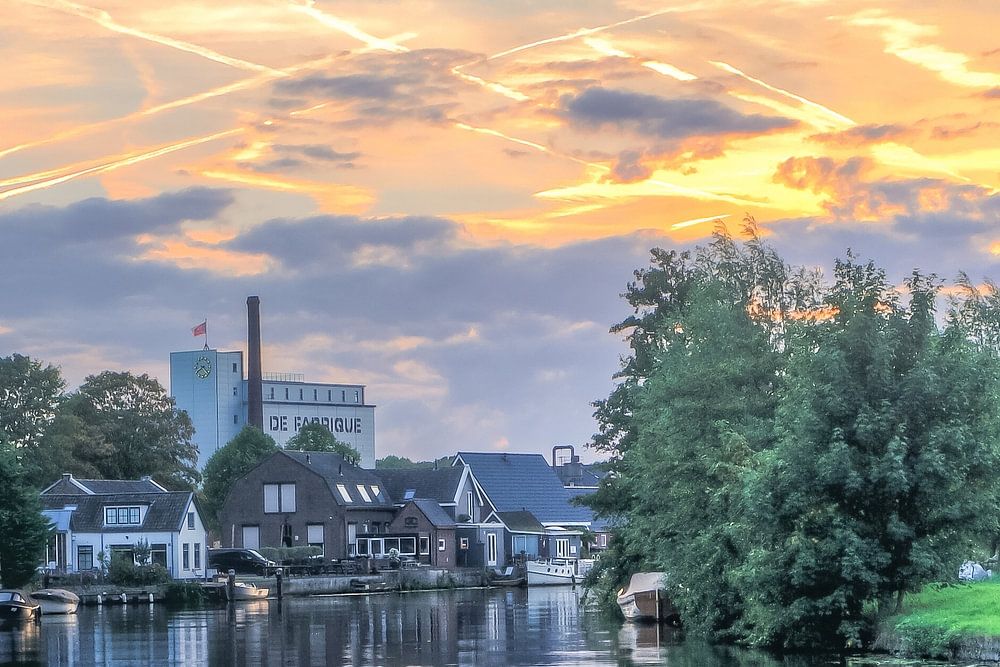 Das Dorf Maarssen liegt in der Einflugschneise des Flughafens Schiphol. Die Gleise geben einen goldenen Schimmer über der Vecht