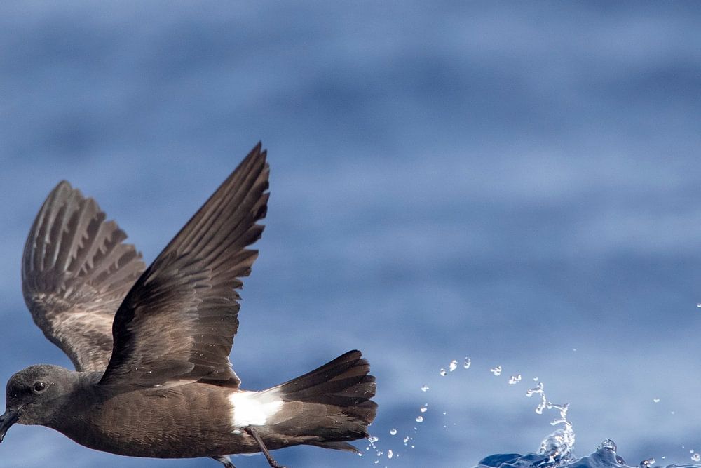 Madeira-Sturmvogel (Oceanodroma castro granti) im Flug über dem Meer bei Madeira.