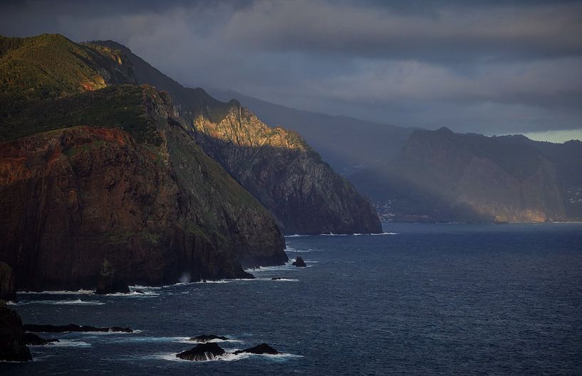Bestelle dieses Landschafts-Wandbild Madeiras wunderschöne zerklüftete Küste von Eefje John als Reproduktion auf Leinwand, Alu-Dibond, als Poster, Fototapete oder Acrylglasbild.