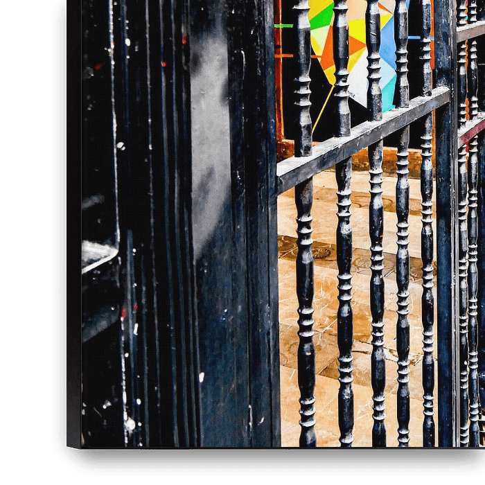 Bestelle das Foto Madrid - Kunst hinter einem Zaun von Wout van den Berg als Reproduktion auf Leinwand, Alu-Dibond, als Poster, Fototapete oder Acrylglasbild.