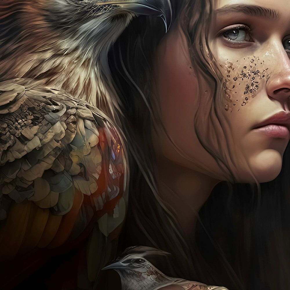 Mädchen gemischt mit Vogel. Dieses Bild wurde mit künstlicher Intelligenz (Ai) erstellt