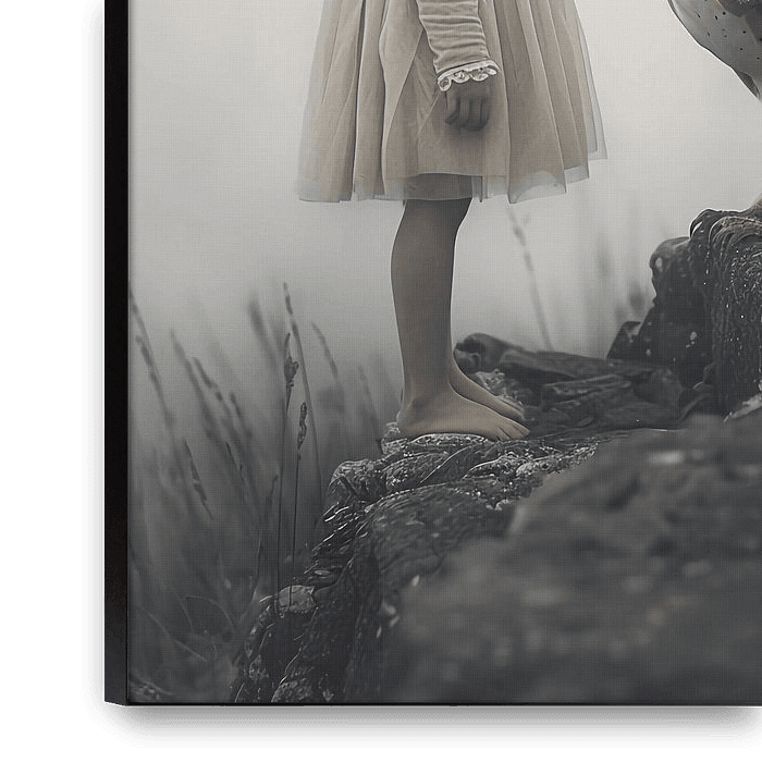 Bestelle das Foto Mädchen mit riesiger Eule von haroulita als Reproduktion auf Leinwand, Alu-Dibond, als Poster, Fototapete oder Acrylglasbild.