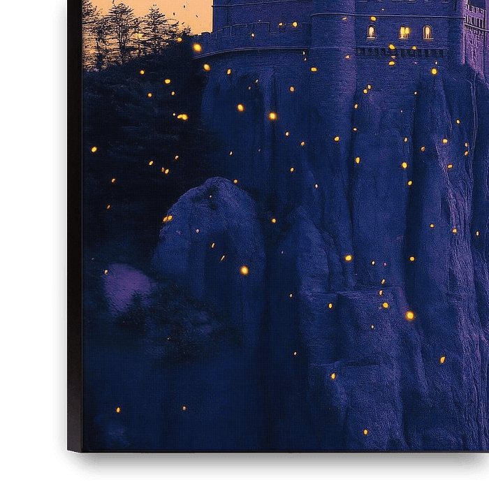 In der Dämmerung erhebt sich ein majestätisches Schloss über einer Klippe, umhüllt von sanften, leuchtenden Lichtern und einem traumhaften, violetten Himmel. Die filigranen Türme und der mystische Flair laden dazu ein, in eine Welt voller Fantasie einzutauchen. Ideal für das Wohnzimmer, um eine Atmosphäre von Magie und Träumen zu…