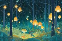 Dieses Kunstwerk zeigt eine beruhigende Szene eines nächtlichen Waldes, in dem leuchtende Pilze zwischen den Bäumen aufleuchten. Die Atmosphäre ist magisch und bezaubernd. Das Ganze strahlt ein Gefühl von Ruhe und Geborgenheit aus, perfekt für ein Babyzimmer. Die Farben sind sanft und dezent, die Linien sind fließend und organisch. Es…