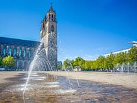 Bestelle das Foto Magdeburg - Wasserspiele auf dem Domplatz von t.ART als Kunstdruck auf Leinwand, Alu-Dibond, als Poster, Fototapete oder Acrylglasbild.