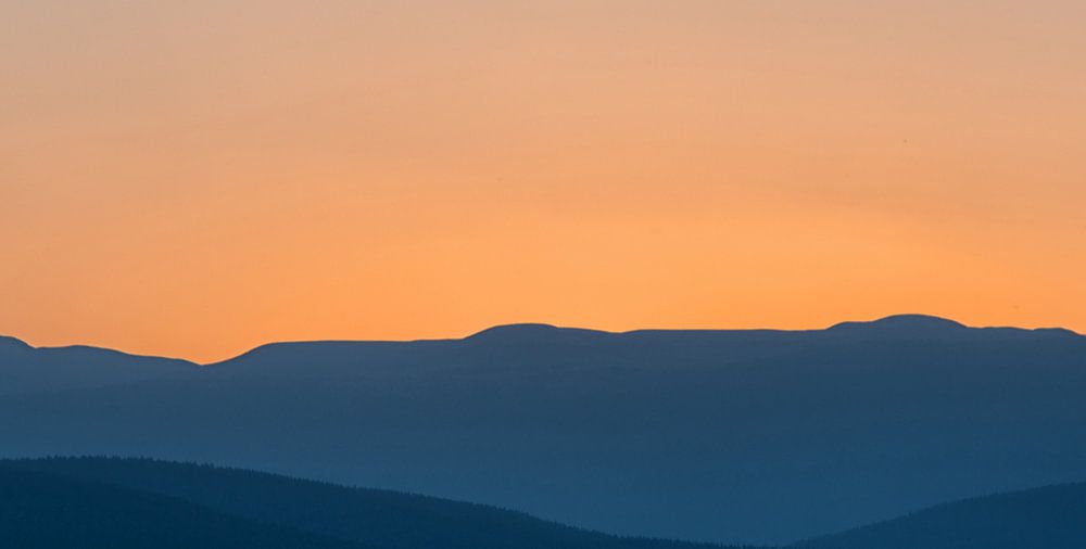 Sonnenuntergang in Südafrika, der Himmel orangefarben, das Licht aus Bergschichten. Ein magischer Sonnenuntergang in Sabie, was ist das für ein Genuss?