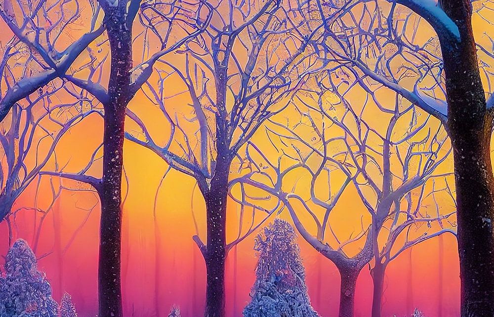 Magische Winterlandschaft mit Bäumen und Schnee Illustration 01