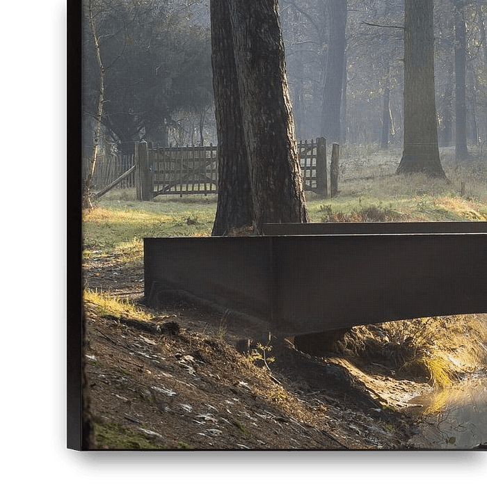 Das weiche Morgenlicht sorgt für einen etwas nebligen Start in den Tag! Die kleine Brücke auf dem Landgut Heidestein Bornia in Driebergen Zeist am Ende des Herbstes!