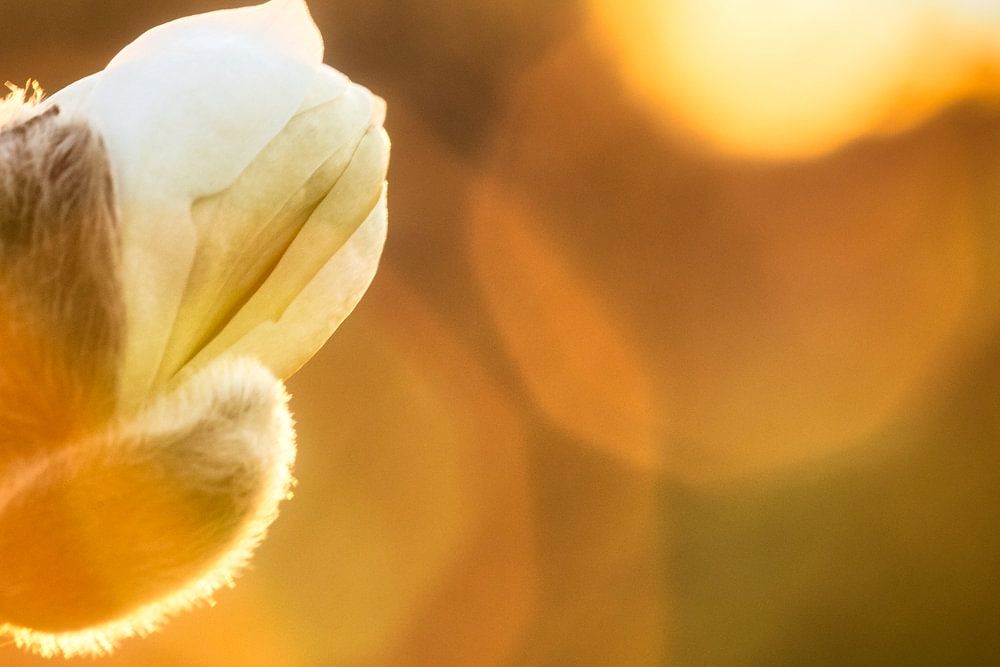 Eine Magnolie in Knospe während des Sonnenuntergangs.