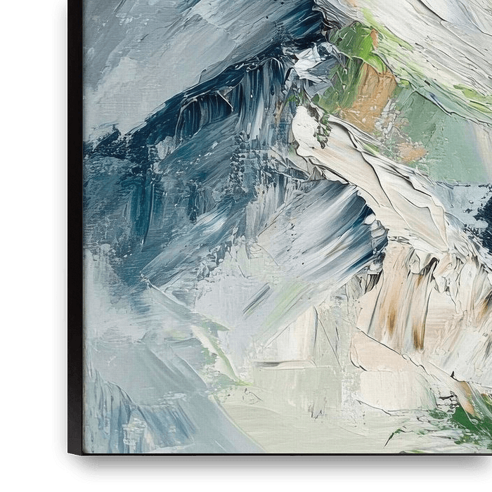 Über beeindruckende Gipfel zieht ein sanfter Nebel, während die kräftigen Pinselstriche die majestätische Präsenz der Berge fangen. Die schimmernde Schneedecke kontrastiert lebhaft mit den satten Grüntönen der unteren Hänge, die wie ein weiches Bett in die Wildnis eingewoben sind. Ein Spiel aus Licht und Schatten bringt die Natur in…