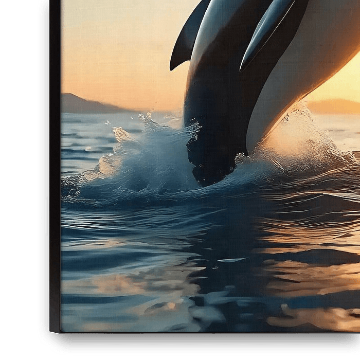 Ein majestätischer Orca gleitet durch die sanften Wellen des Ozeans, während die Sonne in einem spektakulären Farbenspiel hinter dem Horizont versinkt. Der Himmel erstrahlt in warmen Tönen von orange, pink und violett, die sich im Wasser spiegeln und eine traumhafte Kulisse schaffen. Der Orca, bekannt für seine markanten schwarz-weißen…