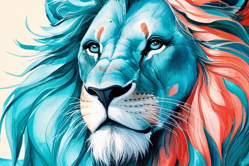 Dieses beeindruckende Design zeigt einen majestätischen Löwen in einer leuchtenden Farbmischung. Die Aquarelltechnik hebt die Stärke und Anmut des Tieres hervor, wobei eine verspielte Kombination aus Blau- und Rottönen die Aufmerksamkeit auf sich zieht. Dieser Kunstdruck passt perfekt in einen modernen, kreativen Raum und verleiht jedem Zimmer eine dynamische und energiegeladene Atmosphäre. Die einzigartige Farbwahl macht es zu einem Blickfang, der sich perfekt für Tier- und Kunstliebhaber mit einem lebendigen Touch eignet. Ob in einem Büro oder in einem Schlafzimmer, dieser Löwe strahlt Kraft und Eleganz aus.