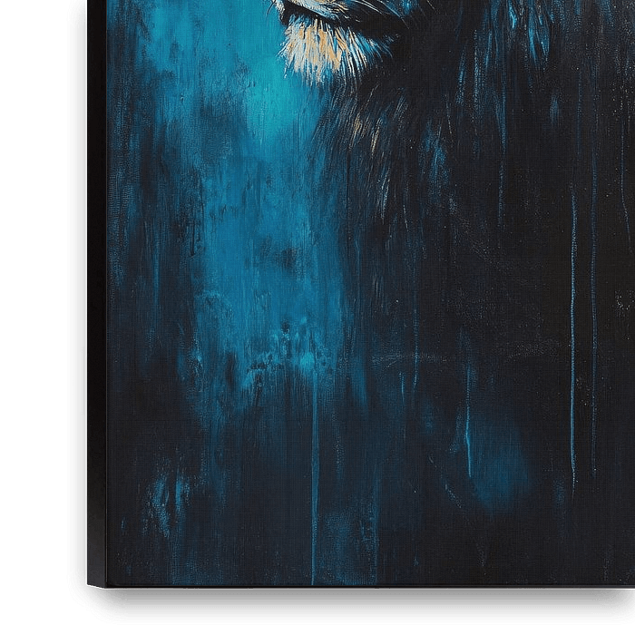 Bestelle dieses Löwen-Wandbild Majestätischer Löwe in Blautönen von Imperial Art House als Reproduktion auf Leinwand, Alu-Dibond, als Poster, Fototapete oder Acrylglasbild.