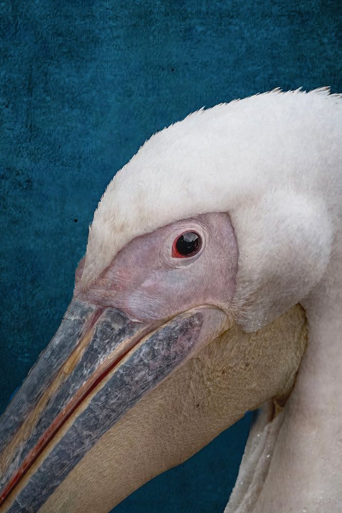 Dieses eindrucksvolle Porträt eines Pelikans fängt die Eleganz des Vogels ein, wobei der Schwerpunkt auf der Textur seines Schnabels und Gefieders liegt. Der tiefblaue Hintergrund verleiht ein Gefühl von Tiefe und Ruhe und hebt die weißen Töne des Pelikans wunderbar hervor. Dieses Kunstwerk strahlt Raffinesse und natürliche Schönheit aus und ist ideal für moderne oder maritime Innenräume, die einen Hauch von Natur und Eleganz vermitteln wollen.