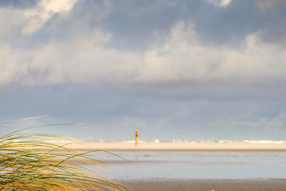 Bei einem Strandspaziergang im Norden von Texel sah ich diesen kleinen Busch aus Strandhafer. Zu dieser Zeit wehte es sehr stark. Ich sah sehr schöne holländische Wolken über dem Horizont auftauchen. Ich legte mich an den Strand und sah im Hintergrund einen roten Pfahl am Strand. Da ich mich auf das Strandgras konzentrierte, wurde der Hintergrund unscharf und erzeugte einen malerischen Effekt.