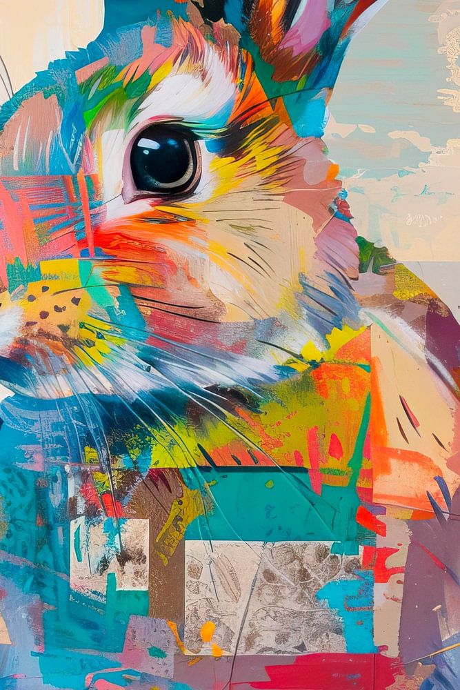 Details: Kaninchen, abstrakt, bunt, Tier, modern, Illustration, Leinwand, Kunst, Portrait, ausdrucksstark