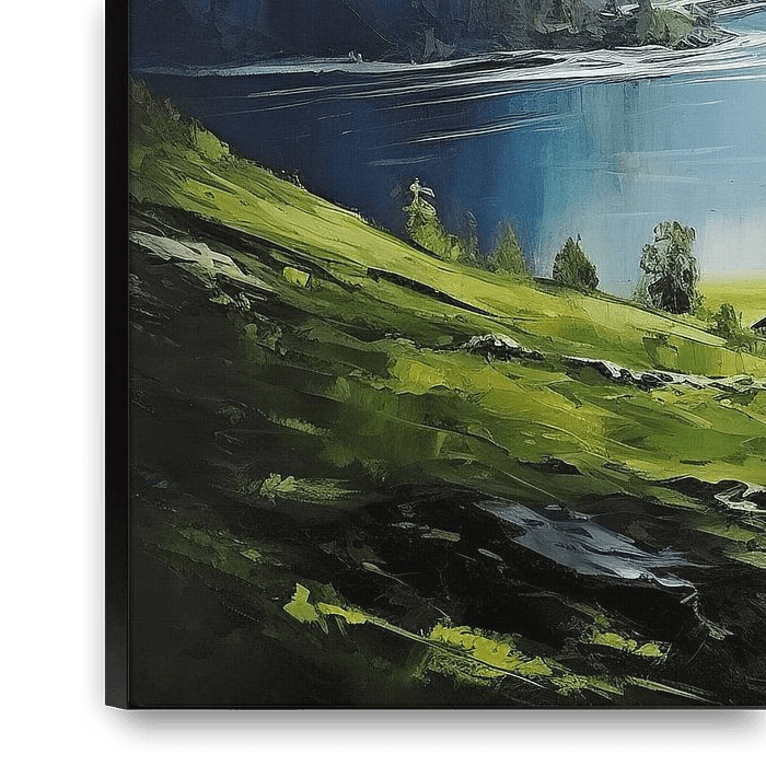 Ihre gewählte Kunst auf Leinwand, gespannt in einem Aluminiumrahmen. Schnell und einfach austauschbar für eine frische Ausstrahlung und ganz nach Ihren Wünschen.